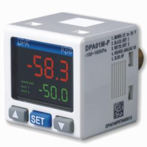 Цифровой измеритель-преобразователь давления с диапазоном -100 до 1000 кПа. Оснащен выходами NPN и 4-20 мА, а также наружной резьбой для подключения.