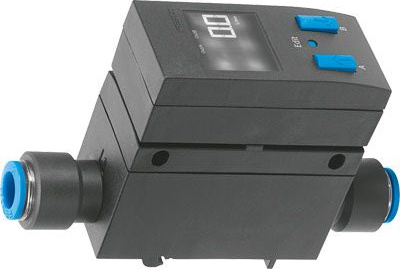 Датчик расхода воздуха Festo SFAB-10U-HQ6-2SA-M12. Предназначен для измерения расхода воздуха (10 л/мин). Имеет крепление на рейку, подключение 6 мм, выходы 2xPNP или NPN/4-20мА и разъем M12.