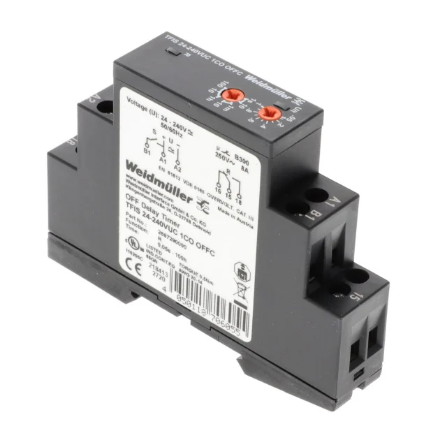 Релевая защита времени Weidmüller для управления длительностью включения нагрузки. Подходит для применений, требующих защиты от перегрузки и короткого замыкания. Обеспечивает задержку включения до 100 часов при максимальной нагрузке 8A и напряжении 250В. Предназначена для использования в различных автоматических устройствах и системах управления.
