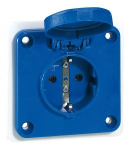 Розетка нем.ст. 16А 2К+З 230В IP44 син.75х75 со шторк.