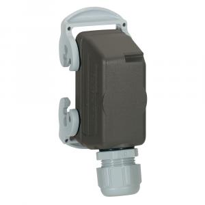 Электрическая угловая розетка с номинальным током 16А. Конфигурация 16 контактов и заземление (16К+З) обеспечивает безопасное и компактное подключение в углу.
